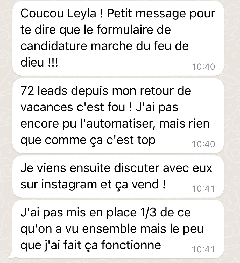 Ta première automatisation complète peut-être prête en 24h grâce aux templates prêts à l'emploi. Ensuite pour maintenir la stratégie d'acquisition, tu auras besoin d'environ 1 à 2h par semaine.